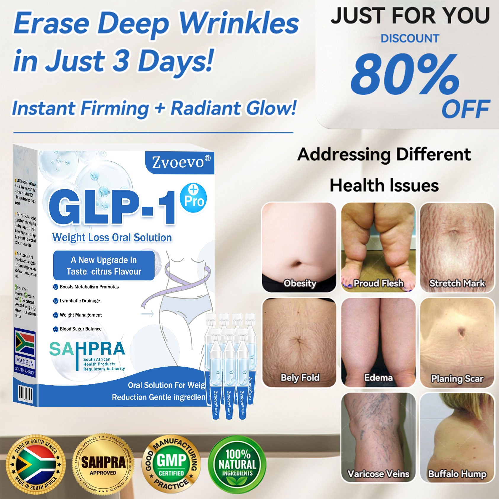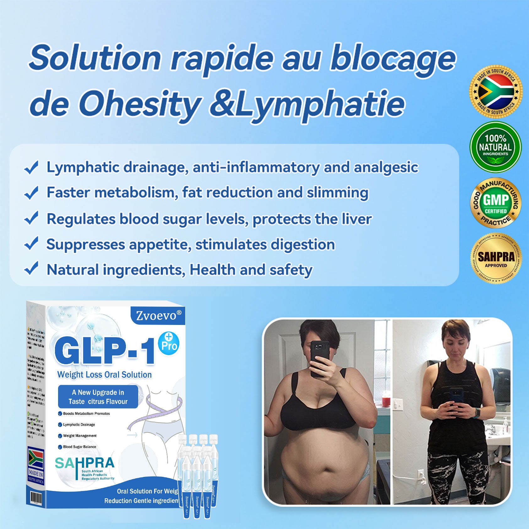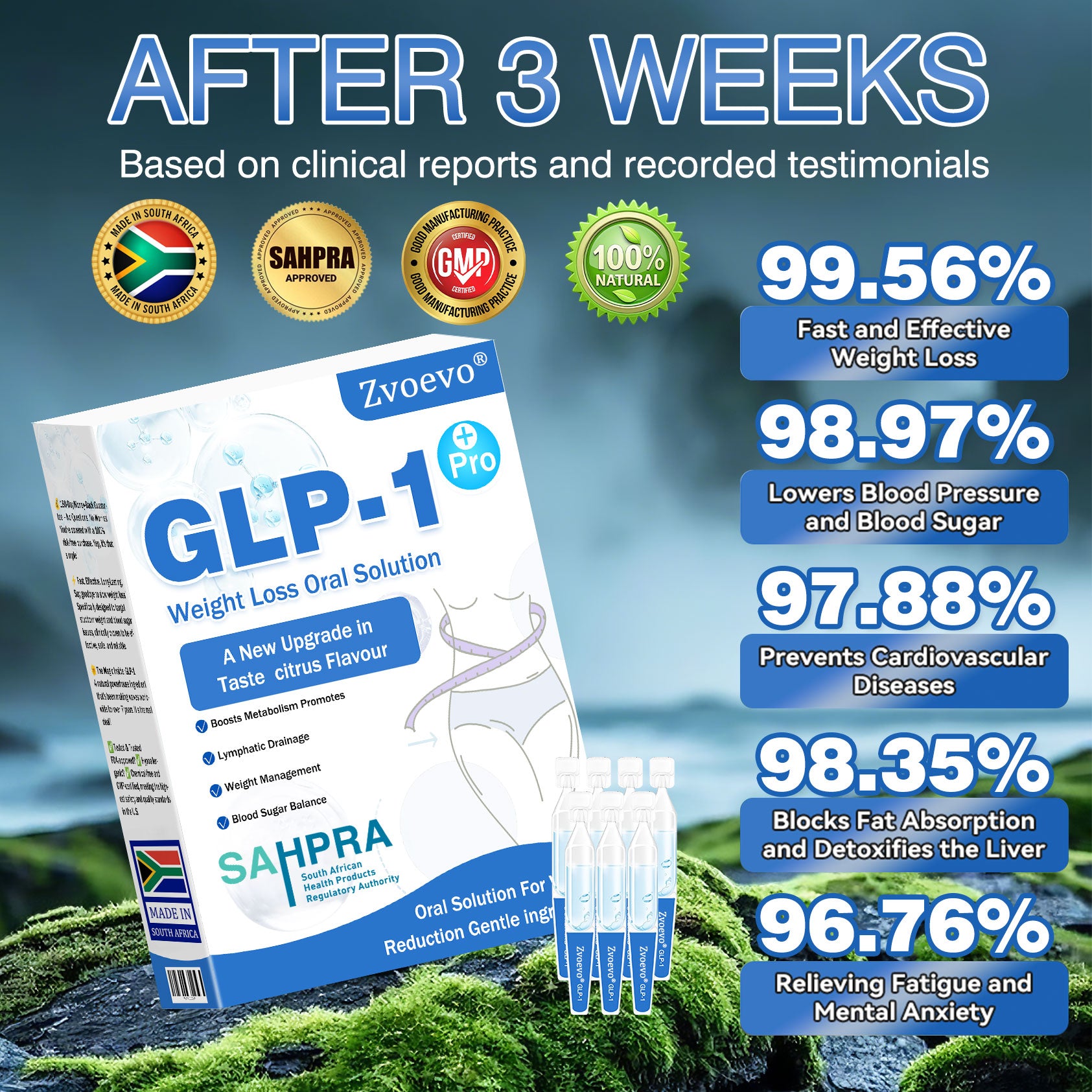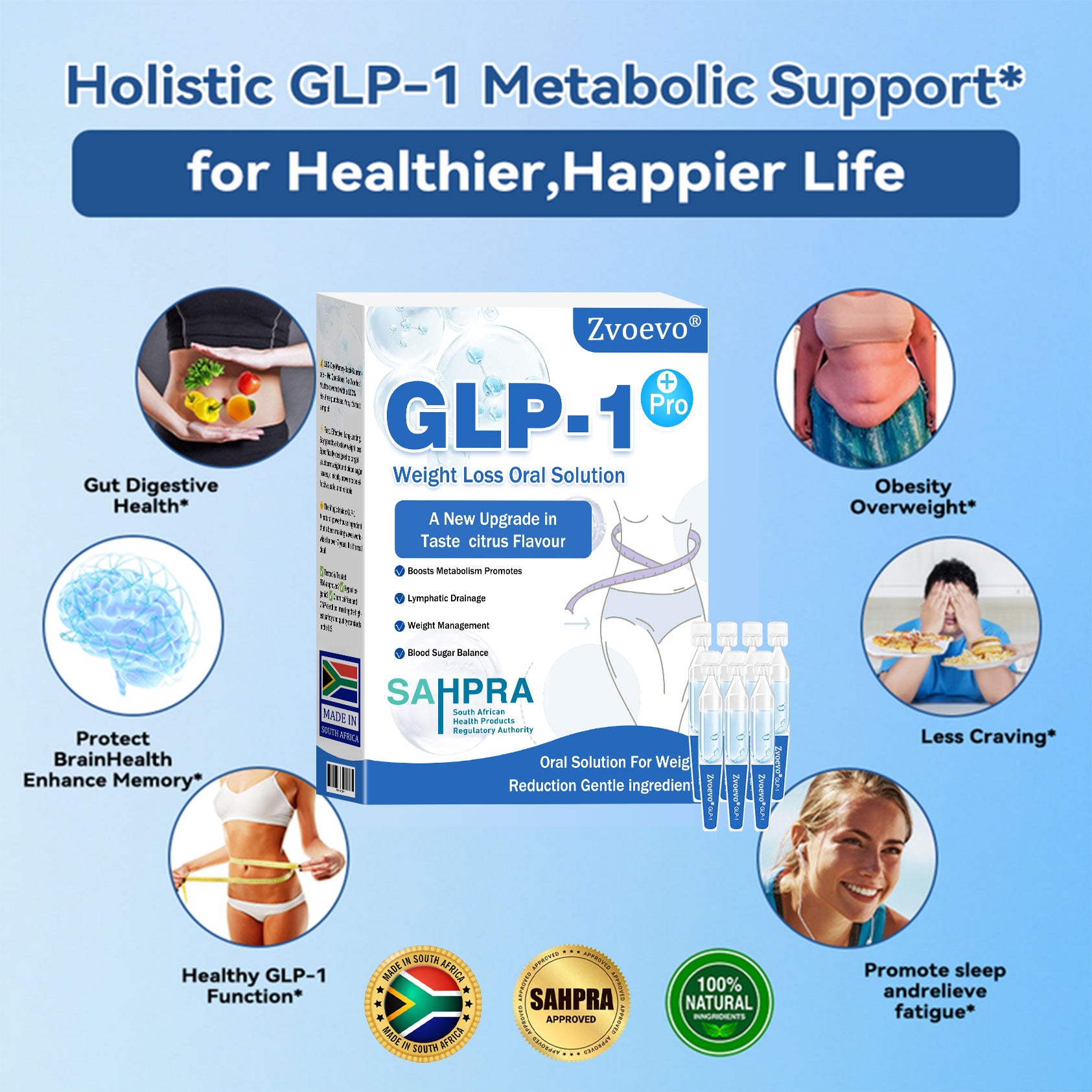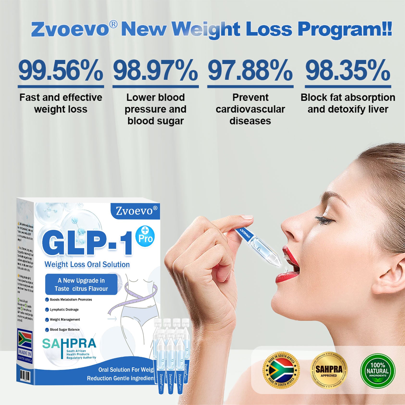 Clinically tested by endocrinologist, Zvoevoยฎ GLP-1 Pro Weight Loss Oral Solution activation can significantly improve obesity and other health issues within just 7 days.