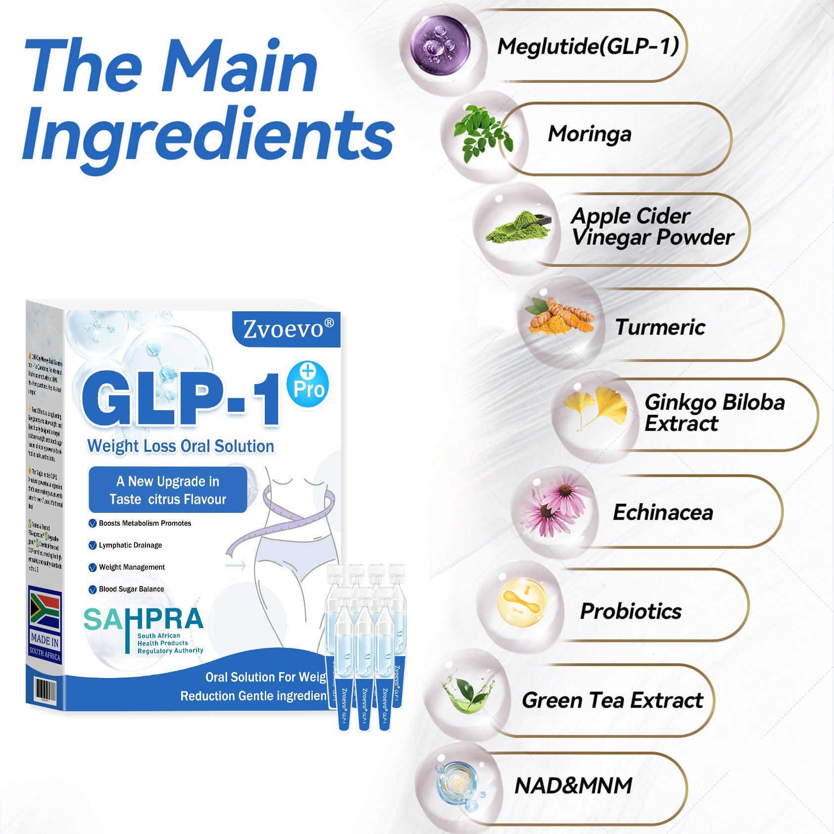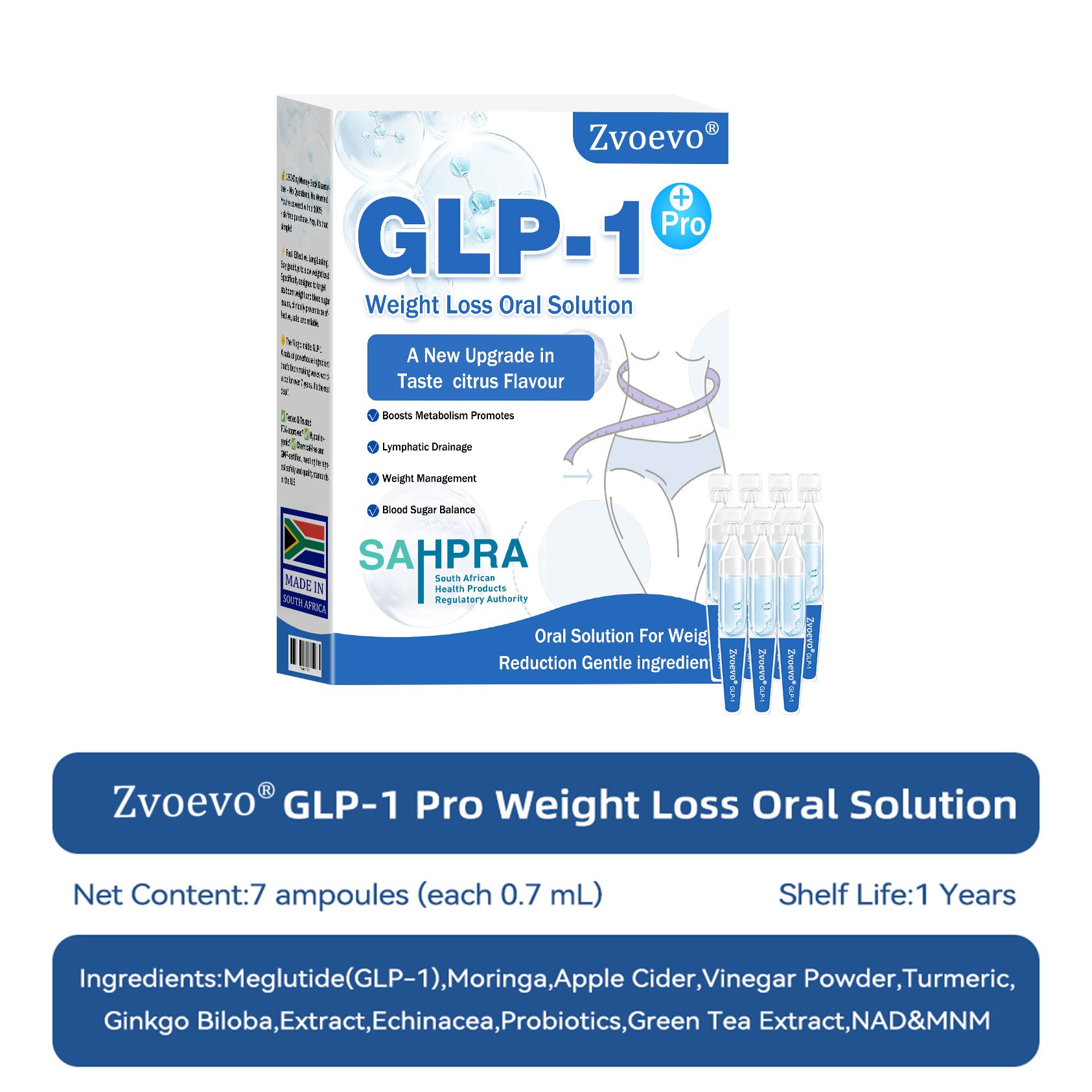 The ZvoevoยฎGLP-1 Pro Weight Loss Oral Solution ย was developed by over 30 international experts in the fields of endocrinology and diabetology after more than three years of research. It combines meglutide with a variety of highly effective herbal ingredients to boost metabolism, accelerate fat burning, and support the digestive and lymphatic systems. This drink is CE-certified and has been tested for safety and efficacy โ a scientifically sound solution for weight loss and holistic health management.